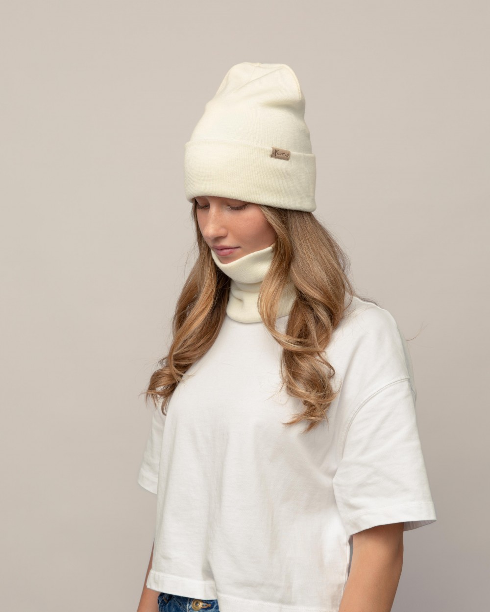 This hat is made of 100% natural merino wool, which allows the skin to breathe and prevents overheating. The double-layer knit provides reliable protection from cold and wind, and the elastic and adaptable material ensures complete freedom of movement. The hat has an extended knit, so it can be worn with the neck bent or with the knit pulled back. The minimalist design is perfect for both women and men, and the high quality guarantees comfort and durability. Designed and made in Lithuania, this hat combines naturalness, warmth and exclusive style.