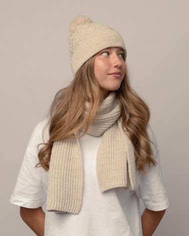Discover a luxurious combination of warmth and style with our 100% merino wool hat, decorated with braids and a playful pompon. This hat will not only protect you from the cold but will also become a great accent in your winter wardrobe.