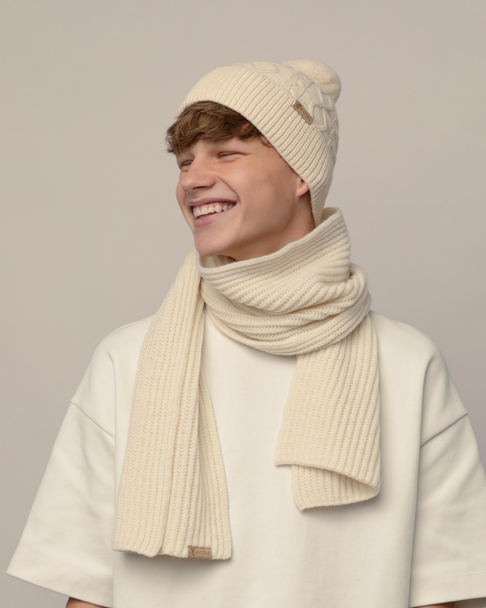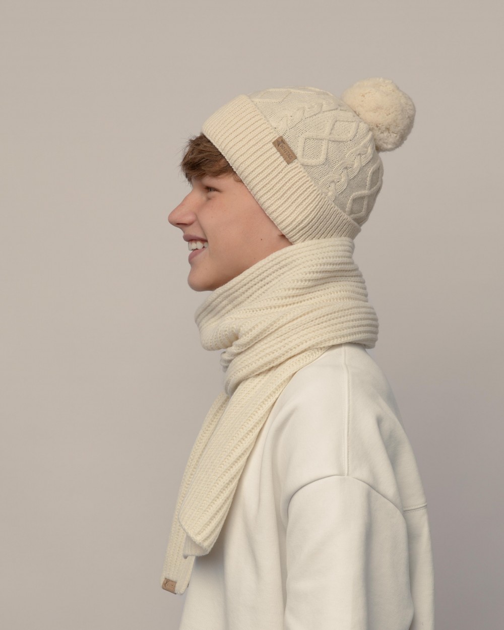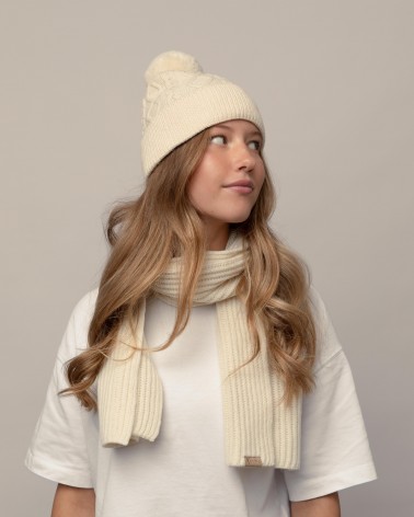 Discover a luxurious combination of warmth and style with our 100% merino wool hat, decorated with braids and a playful pompon. This hat will not only protect you from the cold but will also become a great accent in your winter wardrobe.