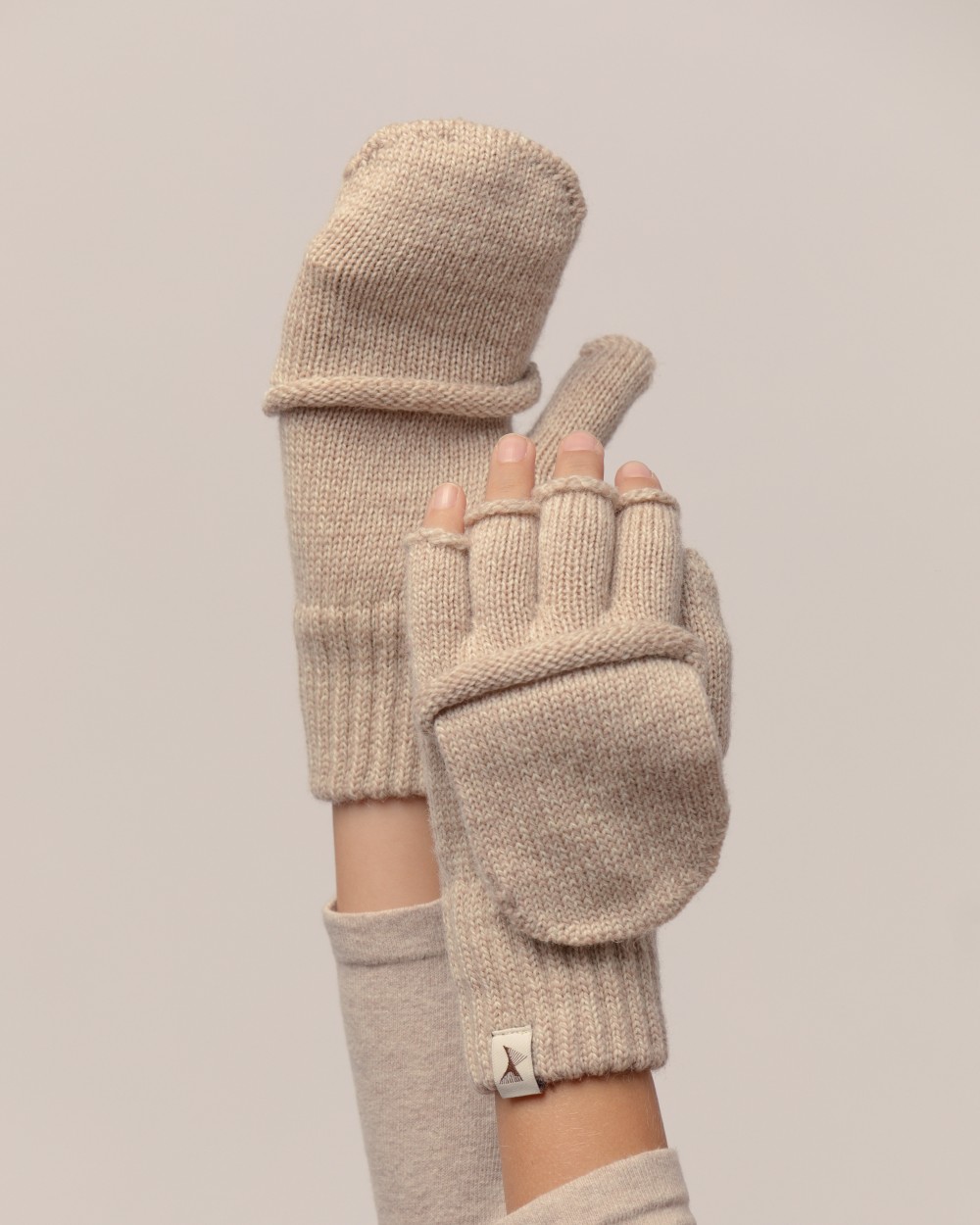 Wool gloves with fold back pocket