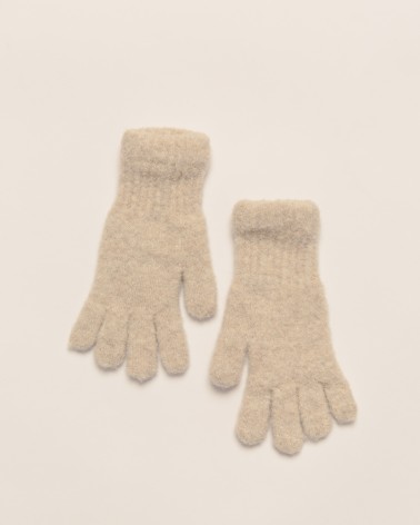 Children's gloves knitted in Lithuania from bouclé yarn. The uniqueness of the product lies in the bouclé yarn — soft and slightly fluffy, giving the knit a felted appearance.