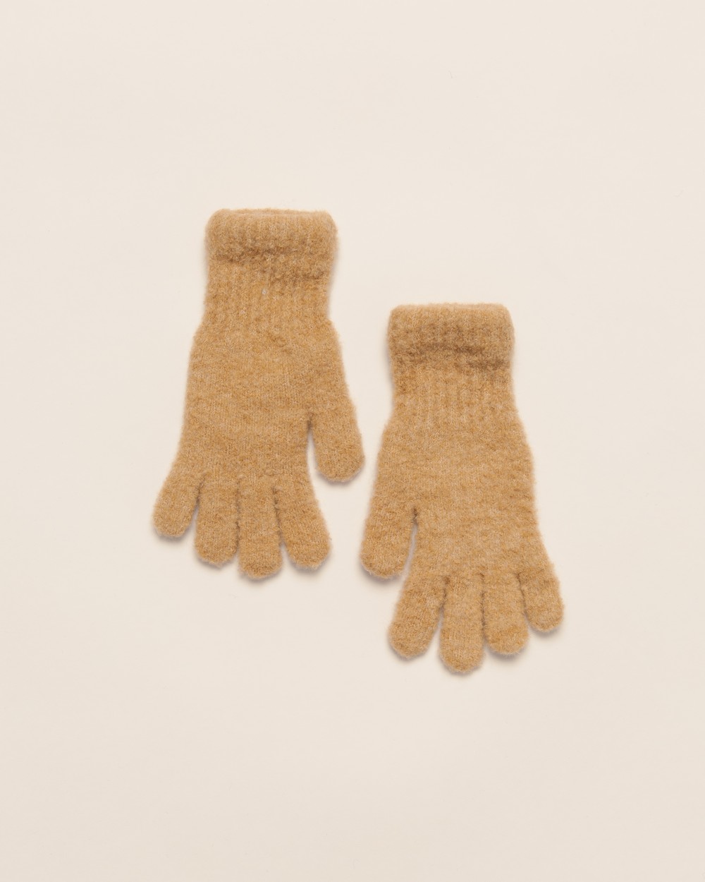 Children's gloves knitted in Lithuania from bouclé yarn. The uniqueness of the product lies in the bouclé yarn — soft and slightly fluffy, giving the knit a felted appearance.