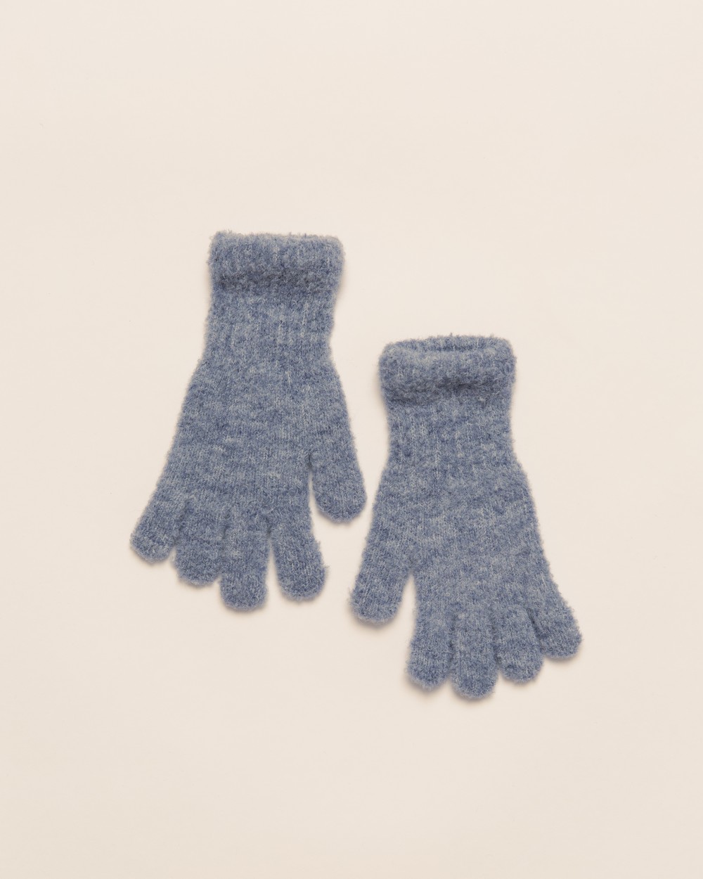 Children's gloves knitted in Lithuania from bouclé yarn. The uniqueness of the product lies in the bouclé yarn — soft and slightly fluffy, giving the knit a felted appearance.