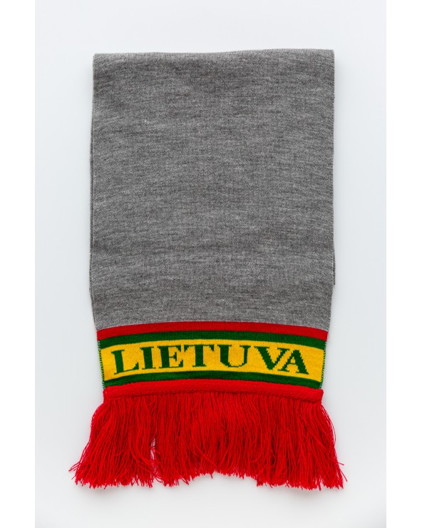 Soft and light scarf in national Lithuanian colors with fringes and the inscription "Lithuania". Knitted in Lithuania.
