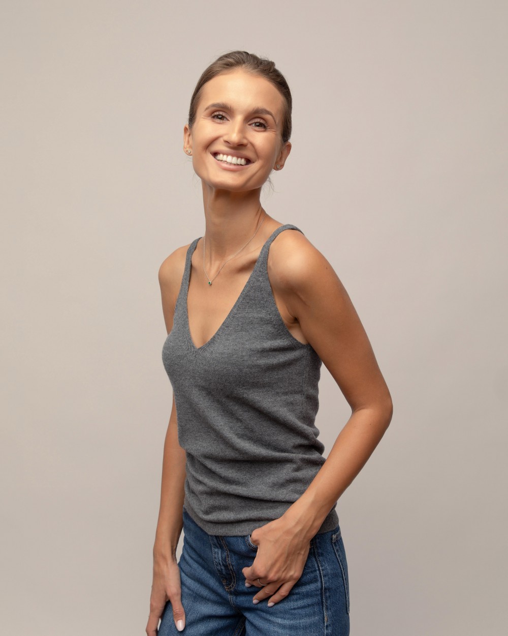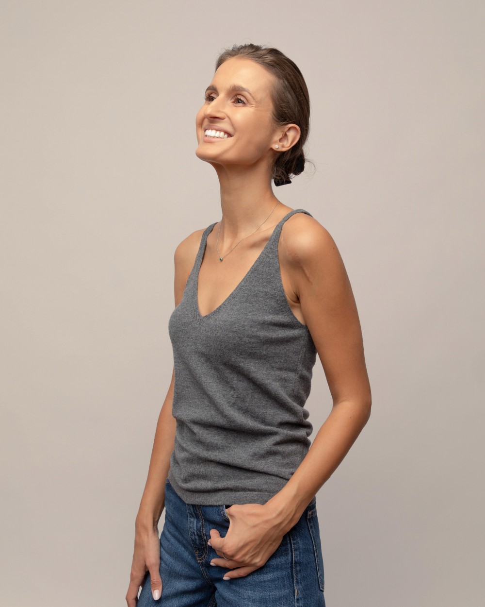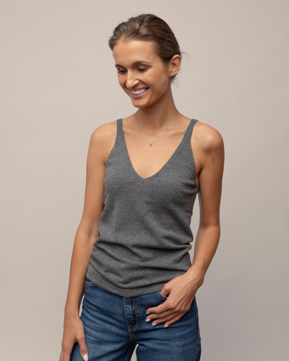 The minimalist design and delicate texture make it easy to combine the blouse with jackets, sweaters or wear it alone – it is perfect for both warmer days when you want lightness, and as a base layer when the autumn weather is cool outside.
