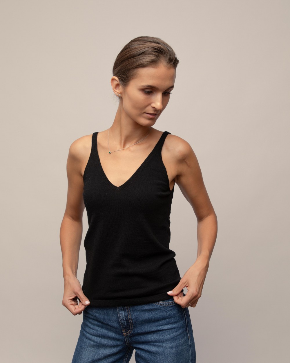 The minimalist design and delicate texture make it easy to combine the blouse with jackets, sweaters or wear it alone – it is perfect for both warmer days when you want lightness, and as a base layer when the autumn weather is cool outside.