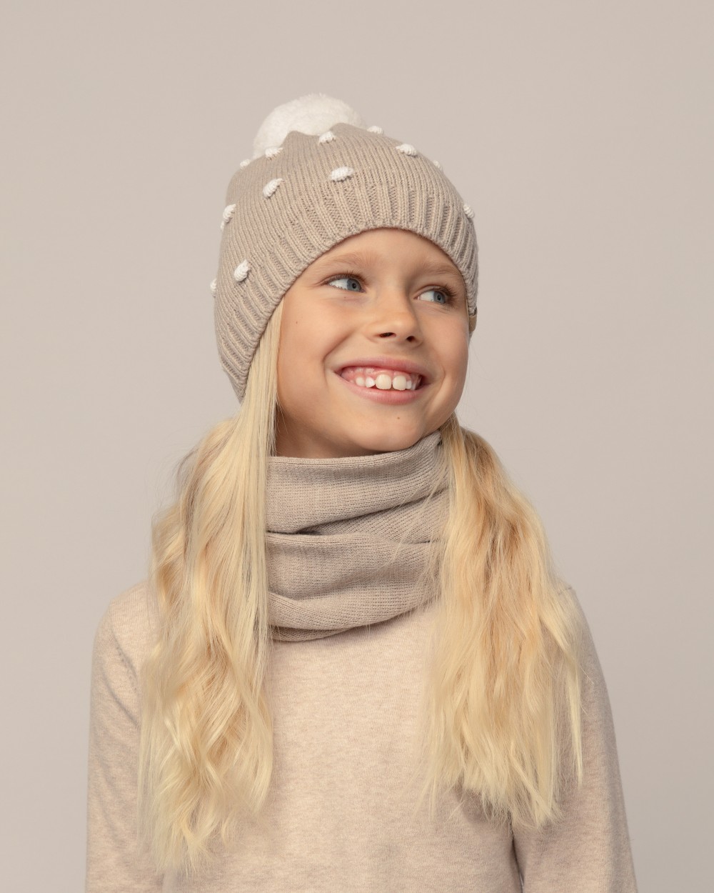 The soft, elastic knit snugly fits the child's neck, warms the skin and does not restrict movement. Due to the closed (infinity) shape, the scarf is extremely convenient to wrap around - it does not untie or fall down. It can be worn both on a jacket to hold the hood, and underneath - so it will become a great, practical accessory for everyday use. This scarf is especially convenient for kindergarten or school - it is quick to put on and does not require tying.