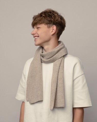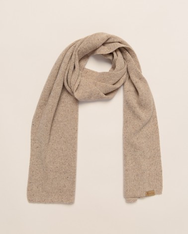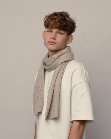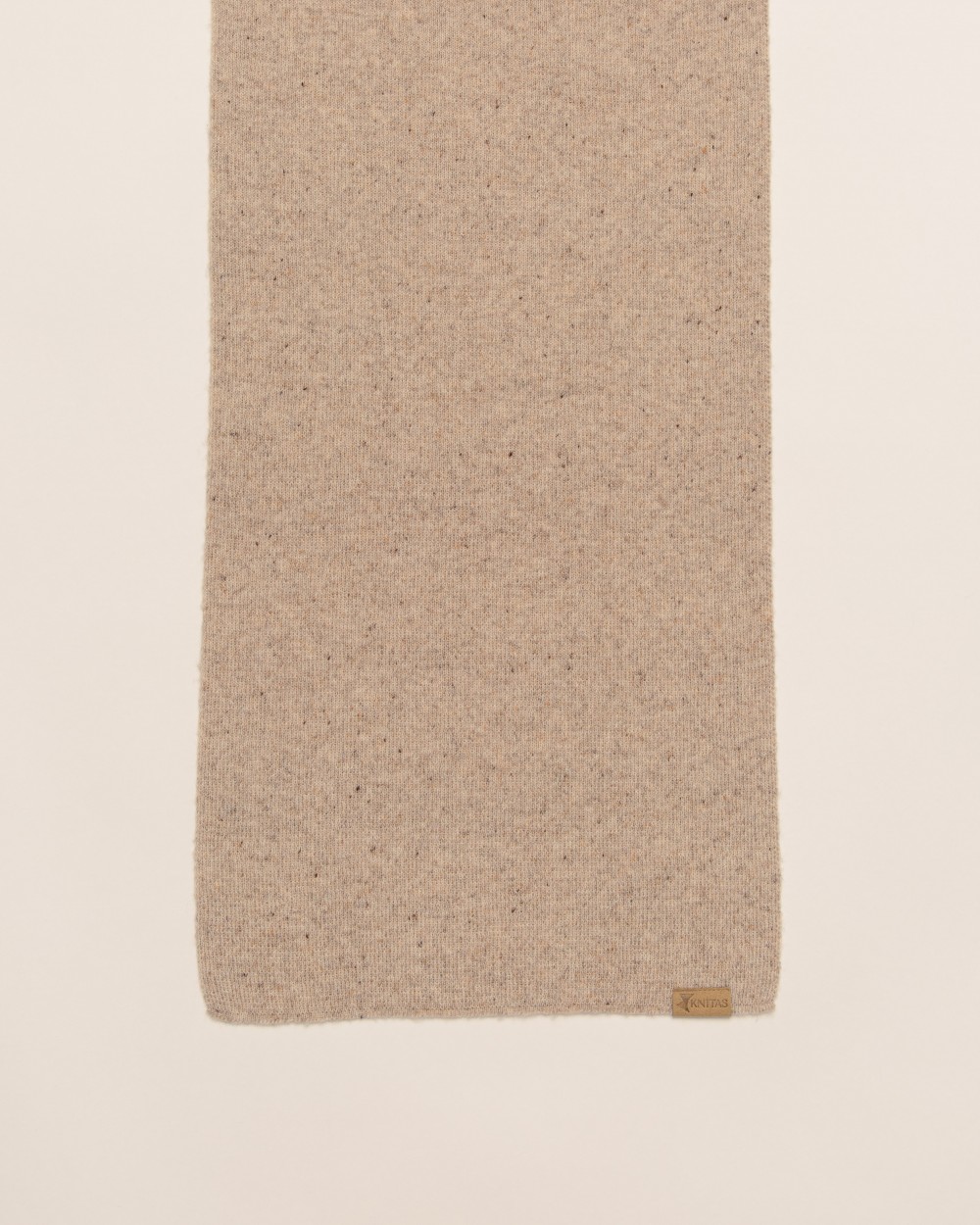 Warm and light woolen scarf knitted in Lithuania. The color of the thread is uneven - dots of different color are mixed in, so the knit looks unique and it is easy to combine with various outfits.
