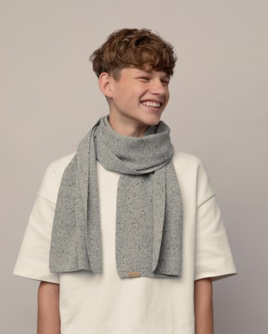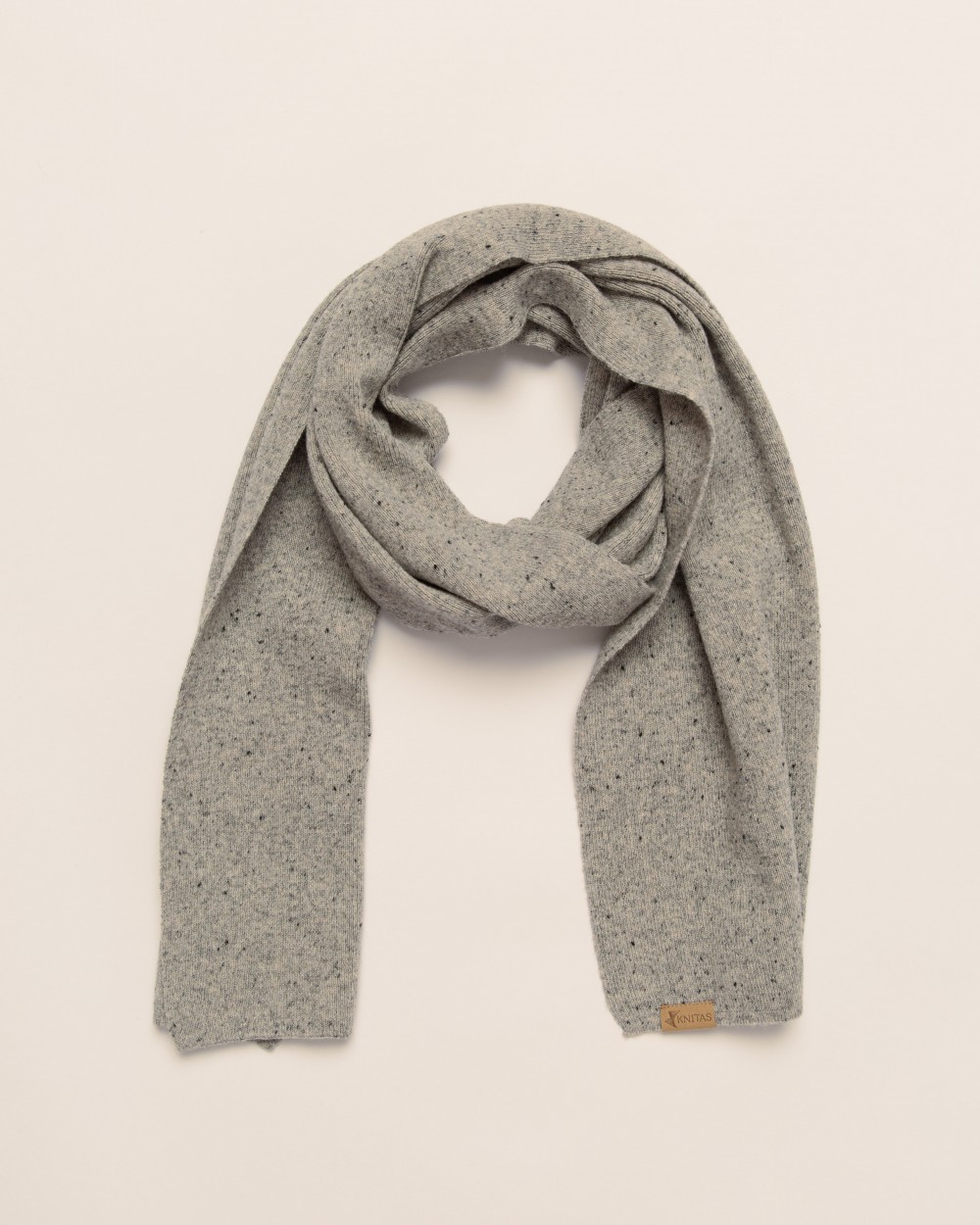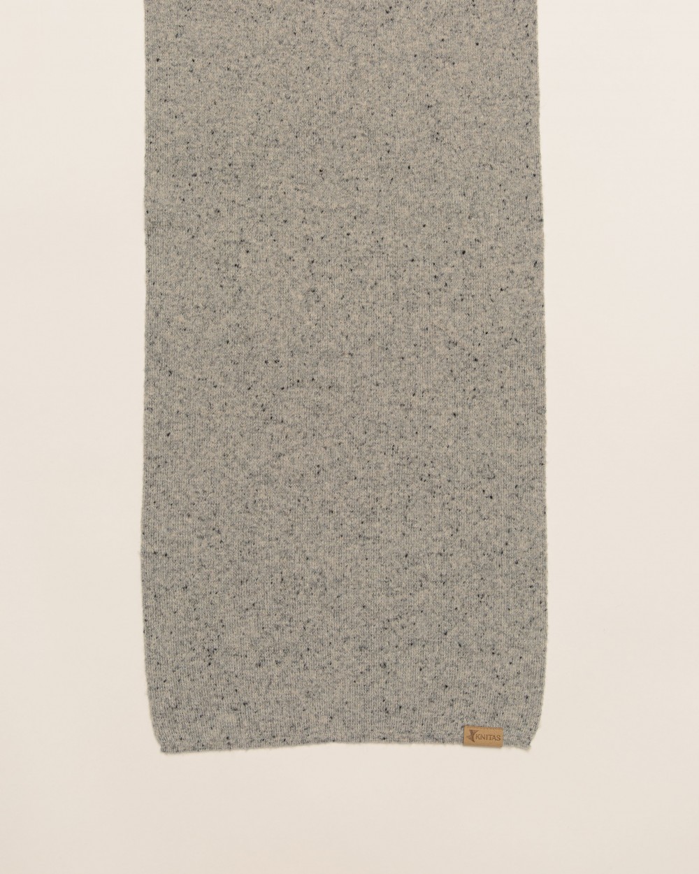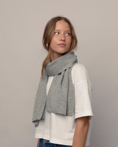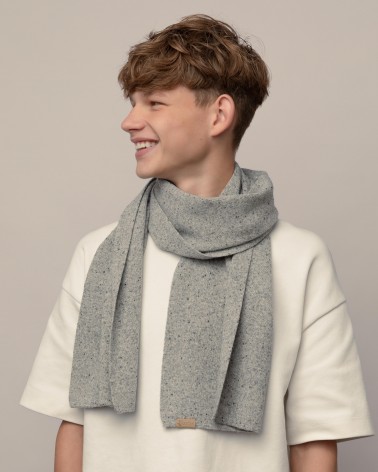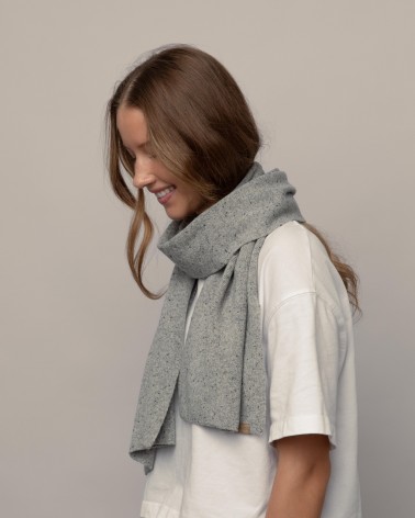 Warm and light woolen scarf knitted in Lithuania. The color of the thread is uneven - dots of different color are mixed in, so the knit looks unique and it is easy to combine with various outfits.