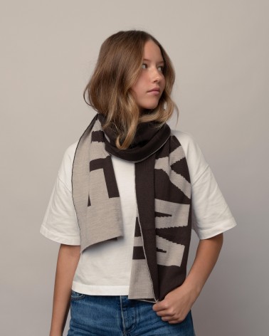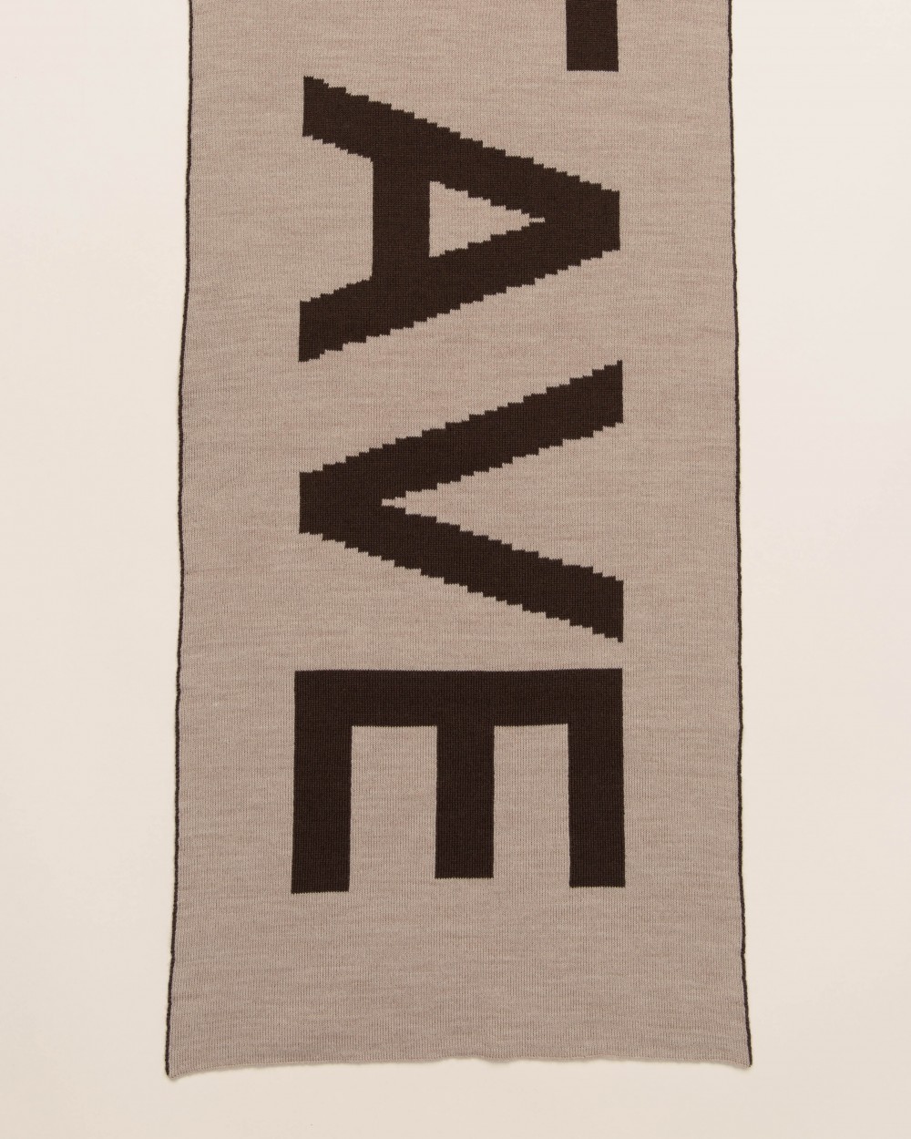 Merino wool double knit scarves are knitted in Lithuania. On the scarf you will find the inscription "MYLIU TAVE" which disappears when the scarf is tied and looks like a delicate knitted pattern. Merino wool is an extremely soft wool that pleases even customers with sensitive skin.