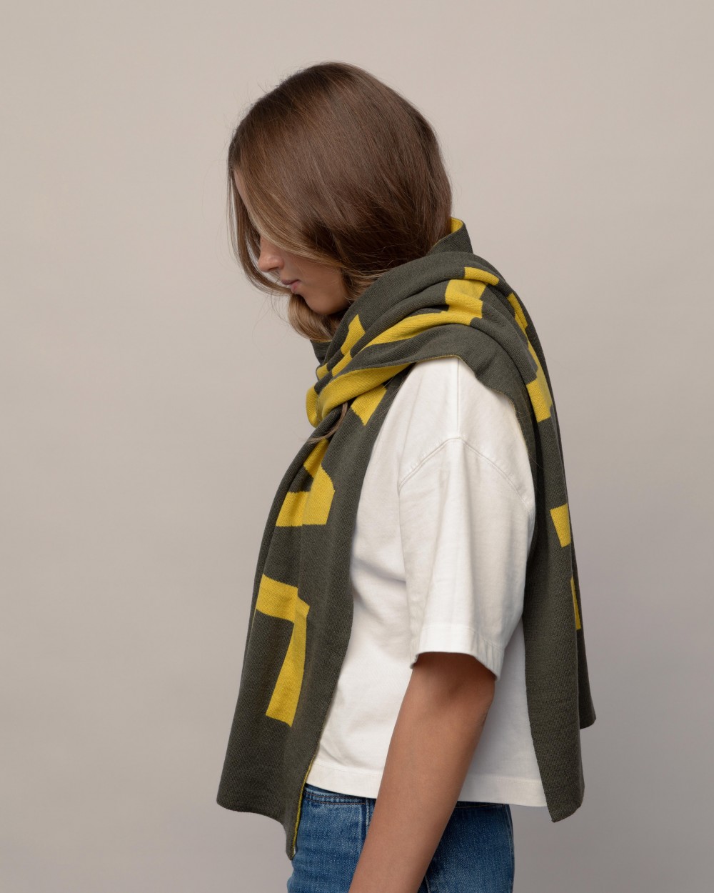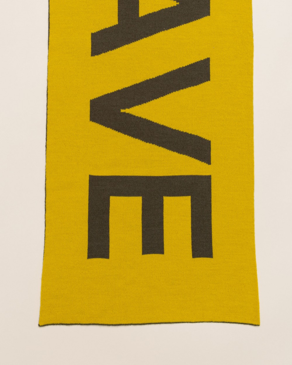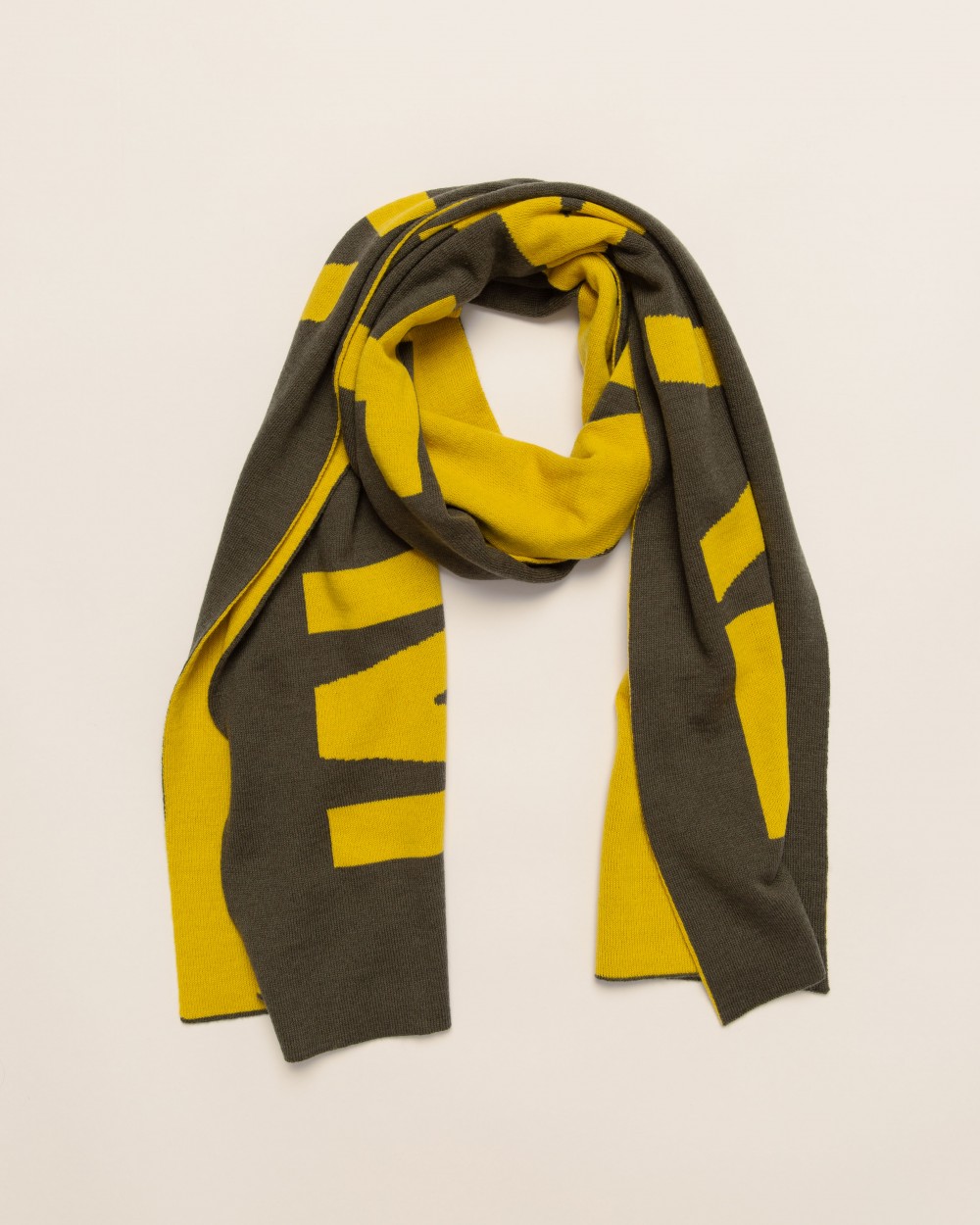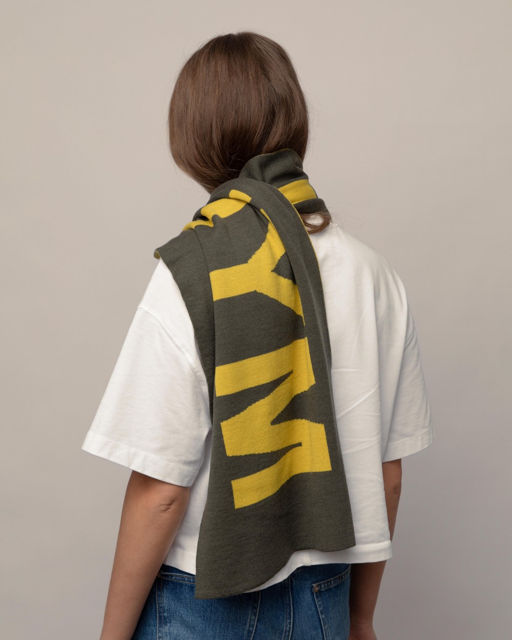 Merino wool double knit scarves are knitted in Lithuania. On the scarf you will find the inscription "MYLIU TAVE" which disappears when the scarf is tied and looks like a delicate knitted pattern. Merino wool is an extremely soft wool that pleases even customers with sensitive skin.
