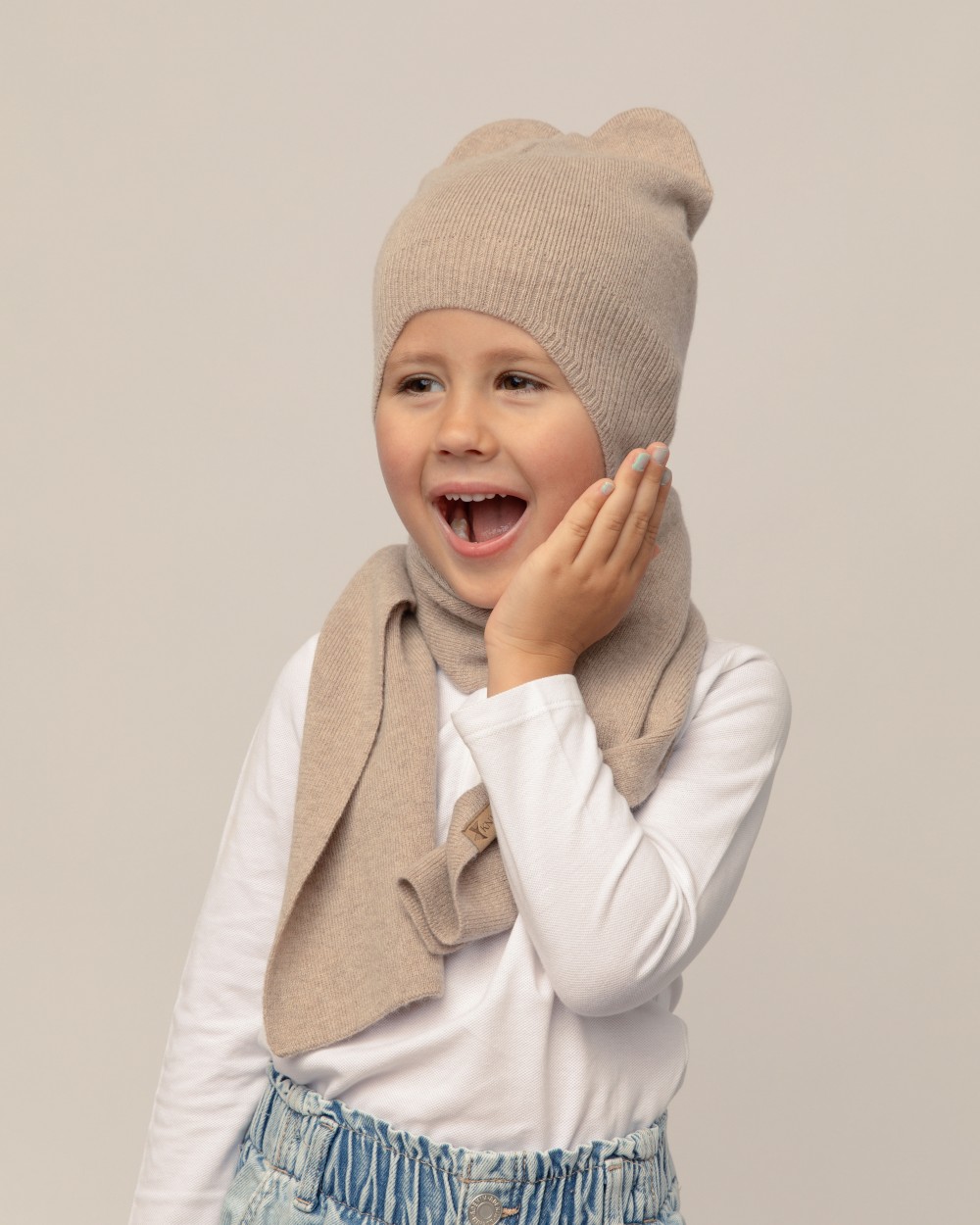 This size scarf is thoughtfully designed to meet the needs of children – it’s lightweight, stretchy, and cozy, making it ideal for cooler days. The natural cashmere and merino wool allow the skin to breathe and effectively wick away moisture, keeping your child’s neck dry and protected from the cold. Indescribable softness, lightness, and warmth – that’s how the harmony of cashmere and merino is best described, and your child will feel it from the very first touch. Perfect for outdoor walks, trips to kindergarten or school.