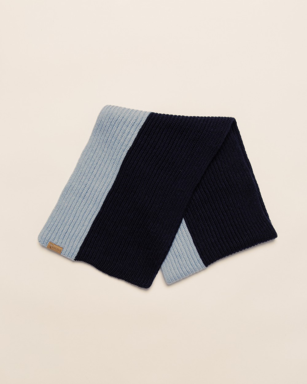 Soft and cozy two-tone 100% merino wool scarf for kids is knitted in Lithuania. Merino wool maintains your child's body temperature and provides cozy warmth. You can choose from different colors so it can be worn by girls and boys.