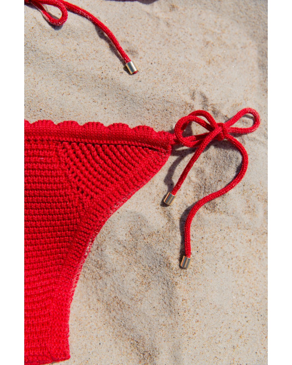 The single knit is comfortable on the body, emphasizing femininity and giving an exclusive look on the beach.