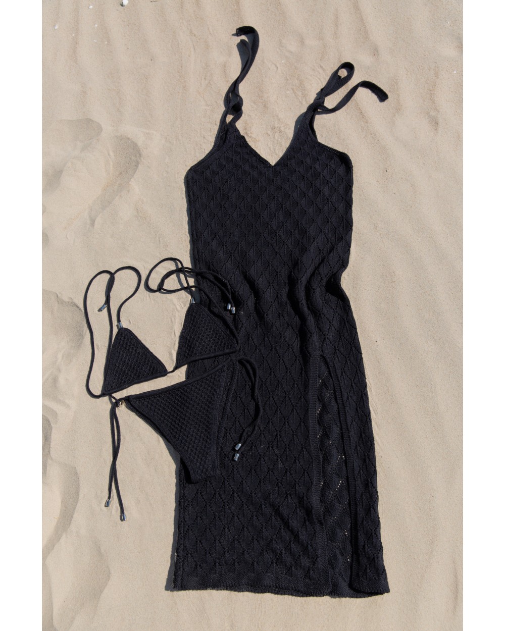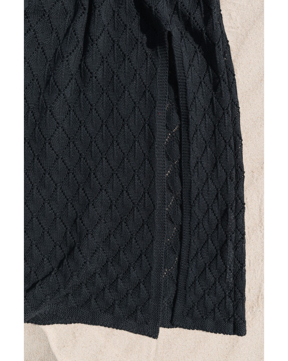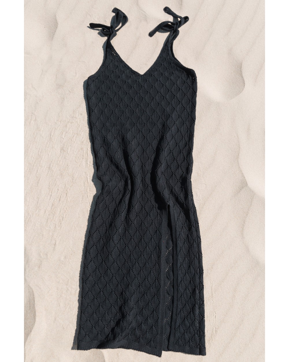 The slit knitted in the dress is an image full of freedom of movement and femininity. If you take a closer look at the knitted pattern, the small leaves lie on your body, allowing the skin to breathe and individually adapting to each woman's body shape.