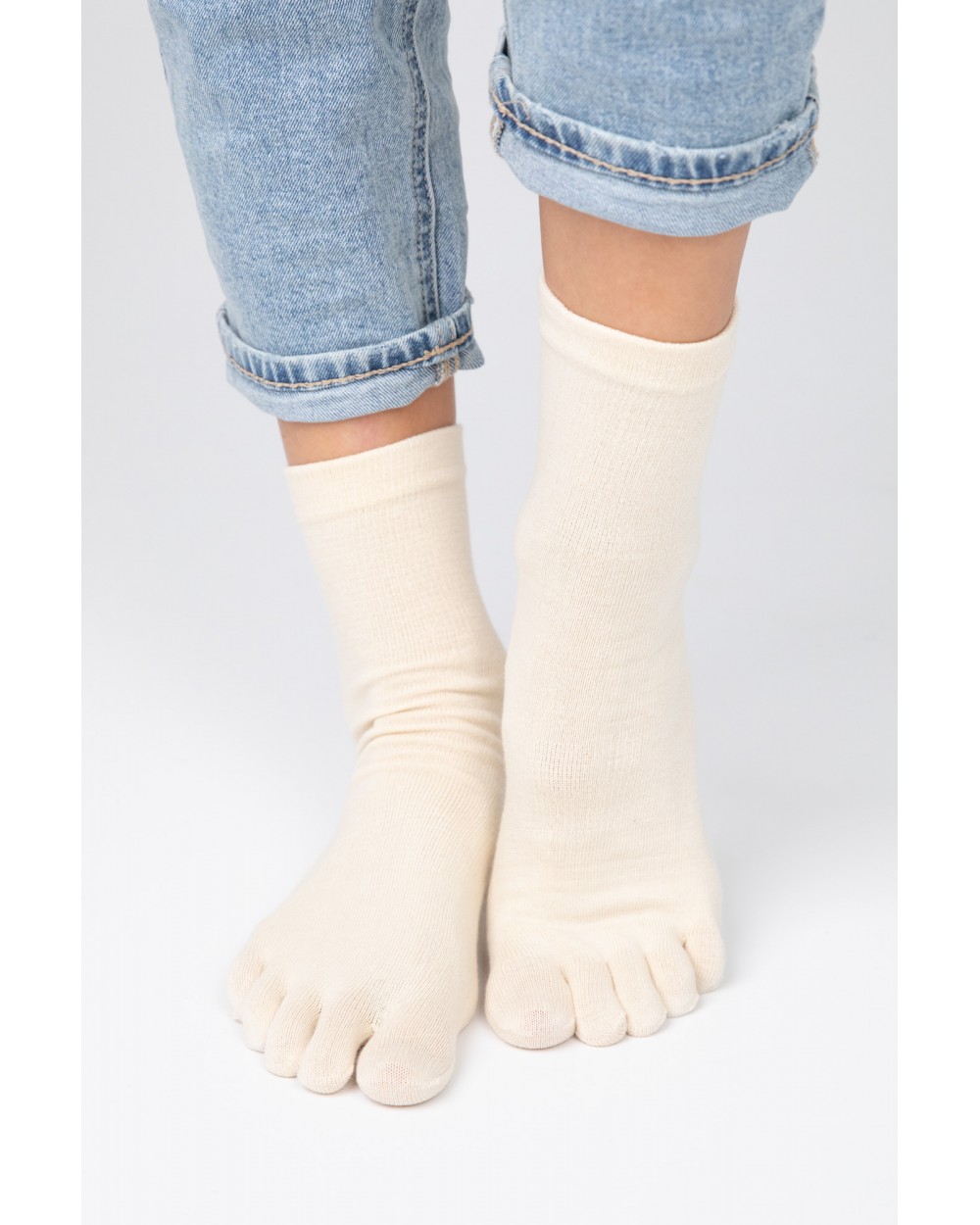 Heelless toe socks created on the Lithuanian coast provide a sense of freedom and comfort with every step. The natural composition, seamless knit gently adheres to the skin, effectively evaporates moisture and ensures the feeling of dry feet. Podiatrists recommend them as an effective means of preventing foot problems - socks help prevent fungus, reduce sweating, and protect against the formation of calluses and blisters. When putting on footwear, the toe-separating structure reduces friction and sweating, so feet remain dry and fresh even during long walks. This is a great choice for an active lifestyle - healthy feet provide lightness and comfort with every step.
