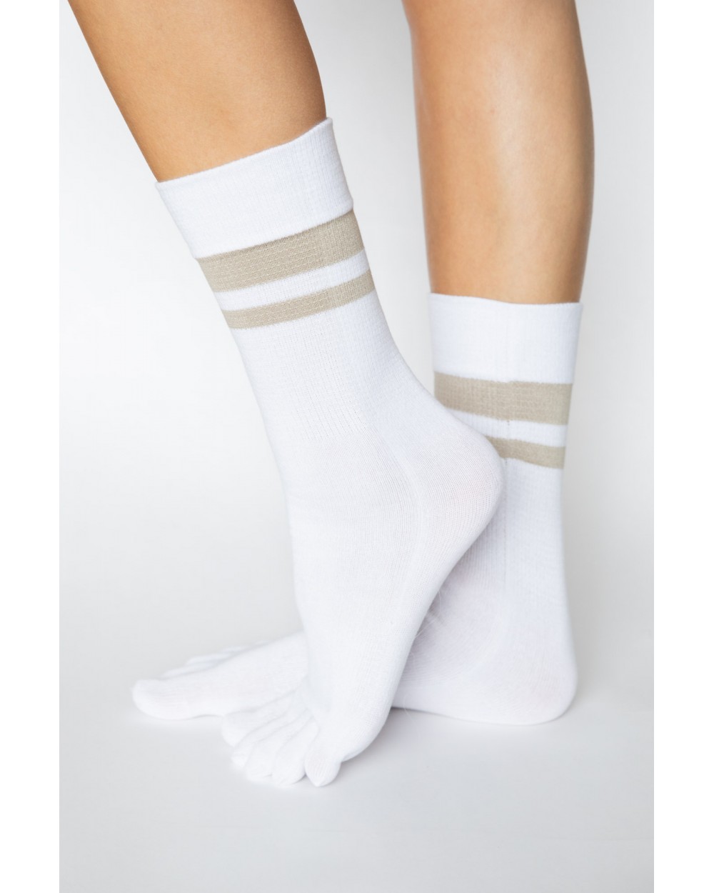 Heelless toe socks created on the Lithuanian coast provide a sense of freedom and comfort with every step. The natural composition, seamless knit gently adheres to the skin, effectively evaporates moisture and ensures the feeling of dry feet. Podiatrists recommend them as an effective means of preventing foot problems - socks help prevent fungus, reduce sweating, and protect against the formation of calluses and blisters. When putting on footwear, the toe-separating structure reduces friction and sweating, so feet remain dry and fresh even during long walks. This is a great choice for an active lifestyle - healthy feet provide lightness and comfort with every step.