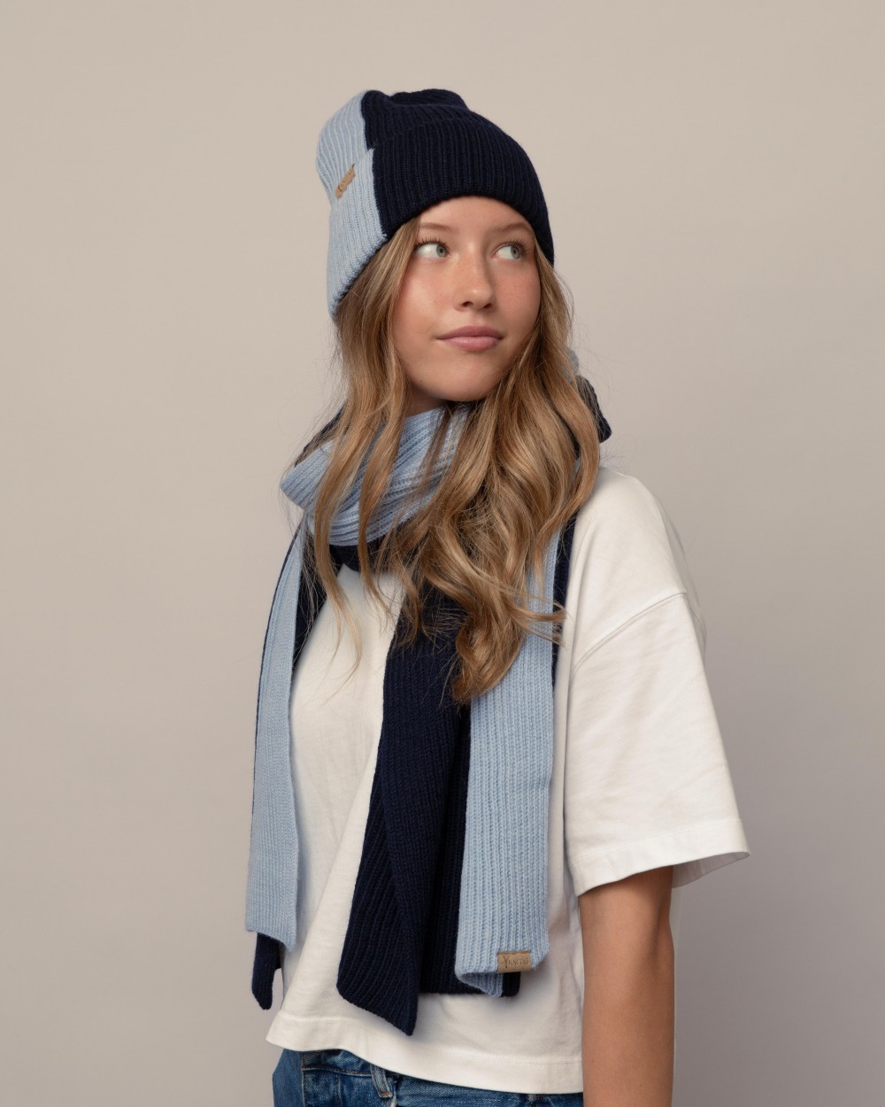 Pehme kahevärviline meriinovillast sall. 100% looduslik meriinovill hoiab teie kehatemperatuuri, aurustab niiskust ja pakub mõnusat soojust. Sall on kootud suurema mustriga ja seda saab kanda ka sallina.
